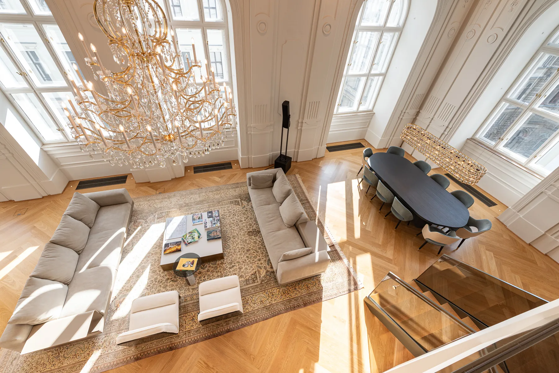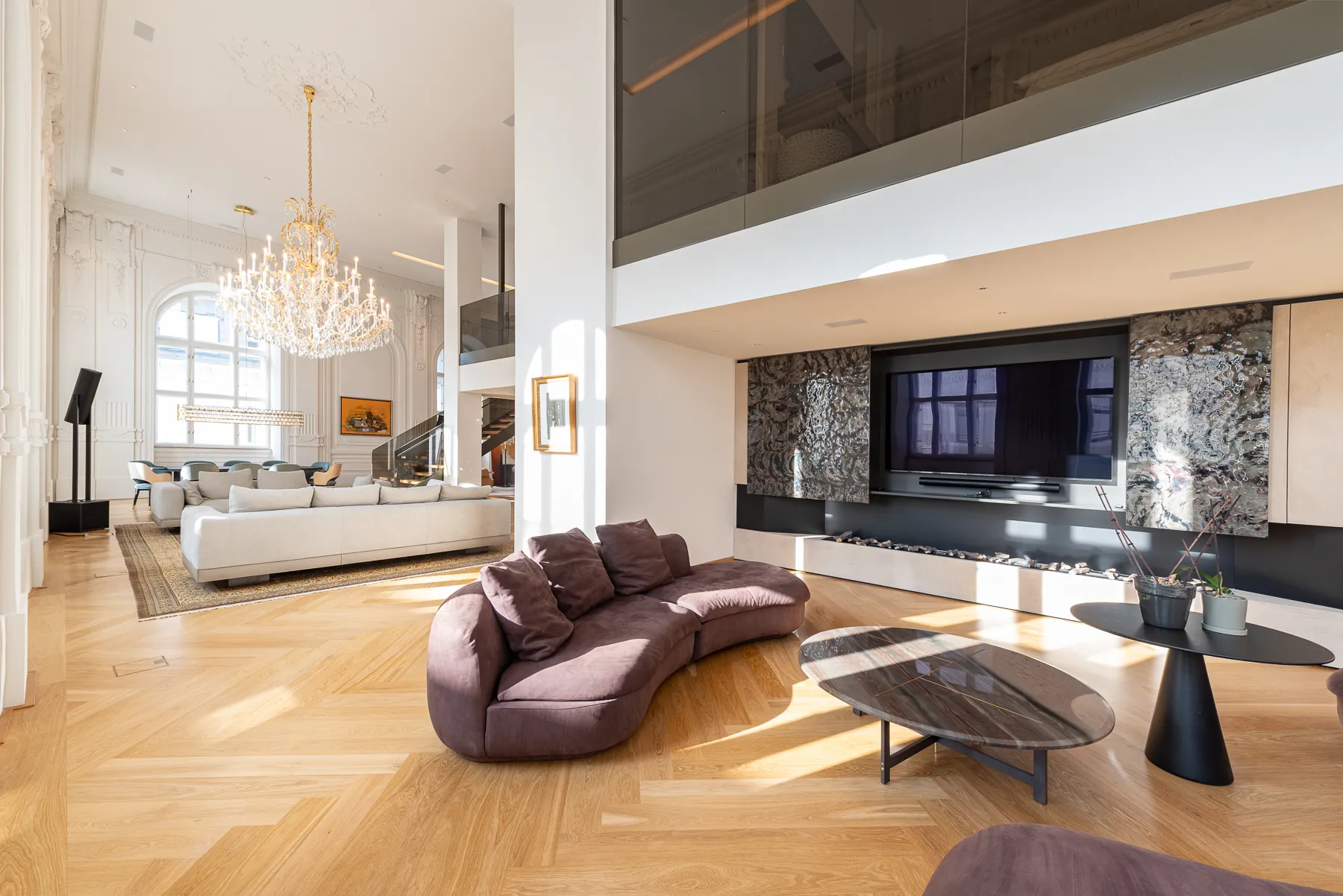 This exceptional palace apartment offers a living experience of the highest standard with approx. 400 m² of living space. Ceiling heights of up to six meters, combined with expansive window fronts, create an incomparable sense of space that is truly unique in Vienna.